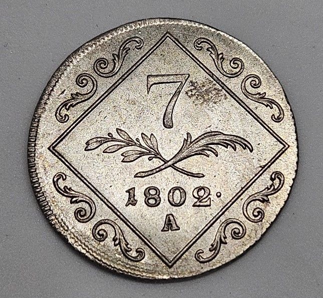 František II. - 7 Krejcar 1802 A - Ag 0,250/1000, 26mm, 4,68g, hrana s řetízkovým ornamentem