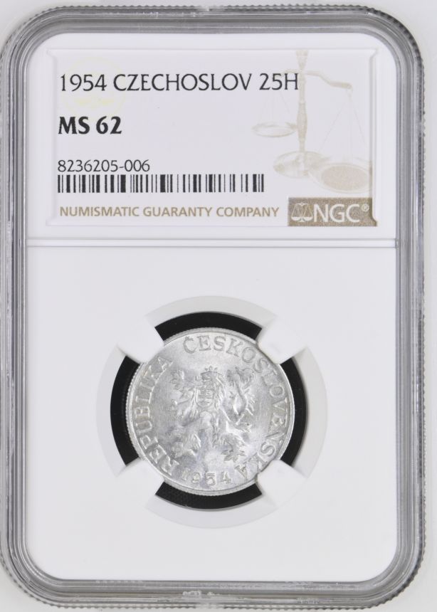 ČSR 25 haléř 1954 NGC MS62 - RR!