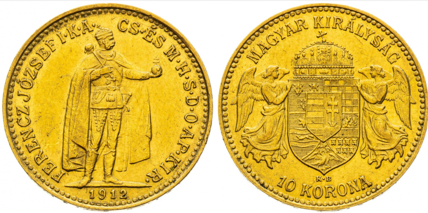 10 Koruna 1912 K.B. Kremnica Kremnica Uherská ražba - Au/Zlato 900/1000, 19mm, 3,387g