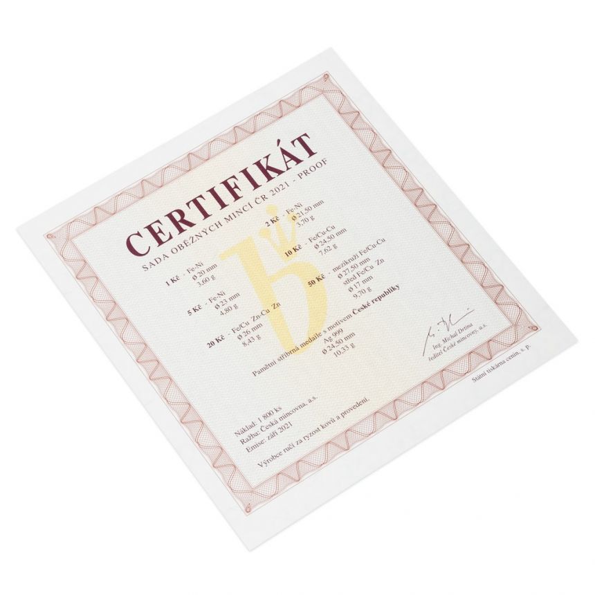 Komplet českého oběživa s ročníkem 2021 je v sadě doplněn pamětní medailí z ryzího stříbra. Tato ražba, která je dílem medailéra Davida Kružliaka, je věnována českým řemeslům a pražským pamětihodnostem.