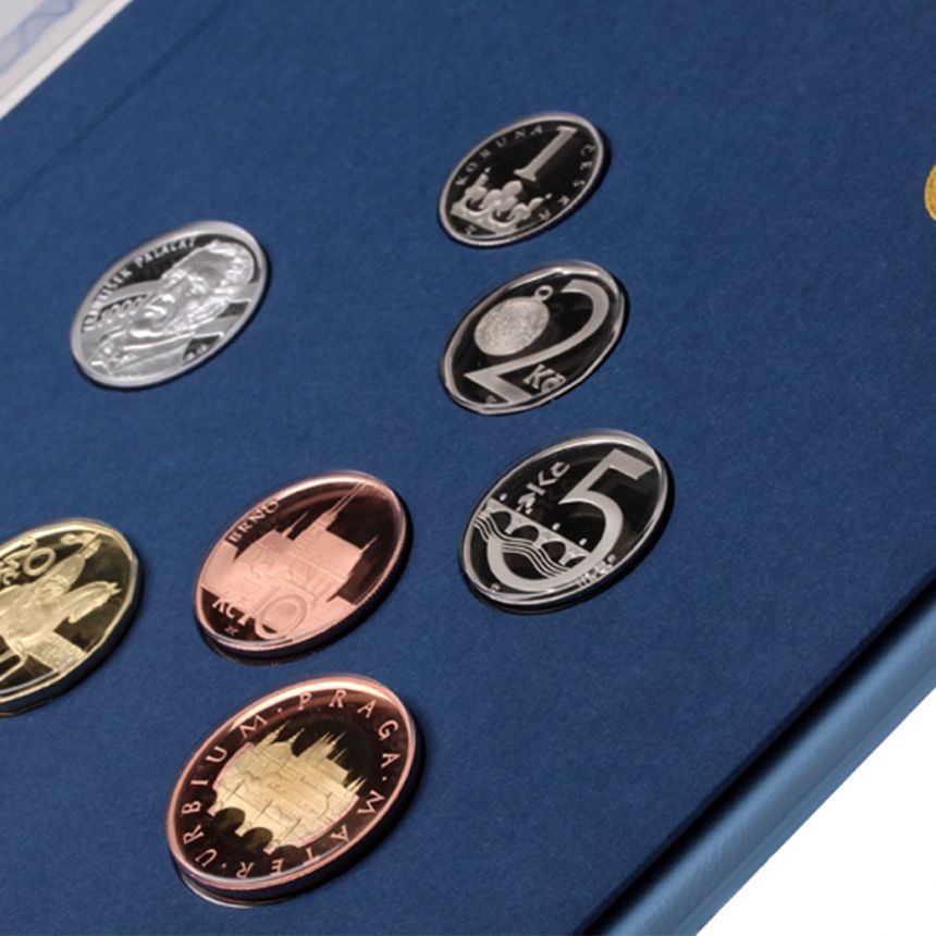 Sada oběžných mincí v kvalitě proof obsahuje mince v nominálních hodnotách 1, 2, 5, 10, 20 a 50 Kč v leštěném provedení, které jsou raženy v daném roce. Sada oběživa je oblíbeným a prestižním sběratelským předmětem zejména pro své vysoce kvalitní zpracování. Krásu českých oběžných mincí v provedení proof podtrhuje decentní modrý semišový přebal se zlatým písmem. Obsahuje rovněž certifikát s vodoznakem, který je vyroben ve Státní tiskárně cenin. Sady mincí v kvalitě proof jsou navíc doplněny pamětní stříbrnou medailí s motivem české 1000Kč bankovky. Averzní straně vévodí portrét Františka Palackého, vedle něhož je umístěna číslice 1000 a jméno v opisu v levé části medaile.