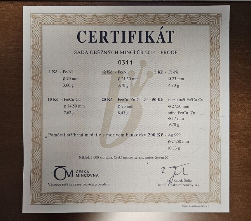 Sada oběžných mincí 2014 - PROOF - dřevěná ETUE
