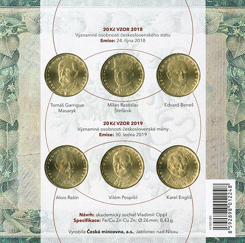 Sada 6 kusů oběžných mincí 2018 a 2019 - 20 Kč Rok měny - Standard