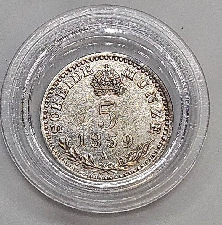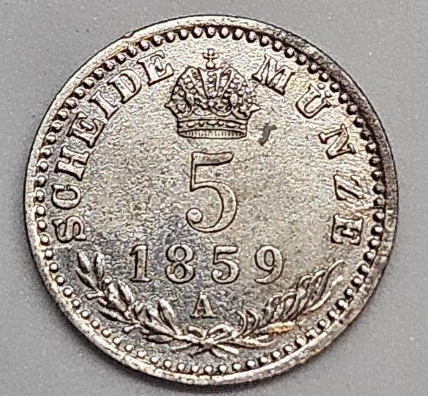 5 Krejcar 1859 A, 16mm, Ag 375/1000, 1,333g - František Josef I. - moc pěkný kousek! a v plastové etue.