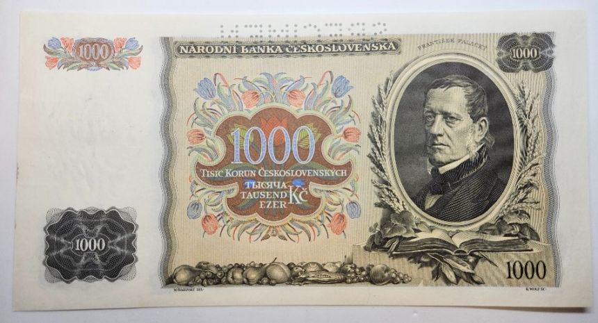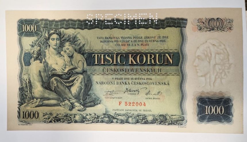 ČSR 1000 Kčs 1934 - série F - N/UNC - SPECIMEN