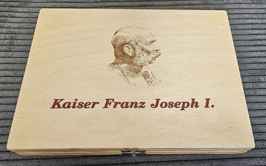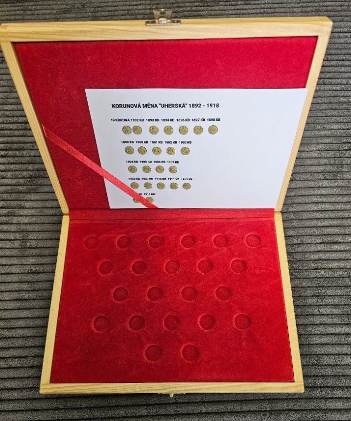 Krásná jednopatrová ETUE na Uherské zlaté 10 koruny Františka Josefa I. -)) Materiál dřevo, rozměry 28,5x21,5cm.