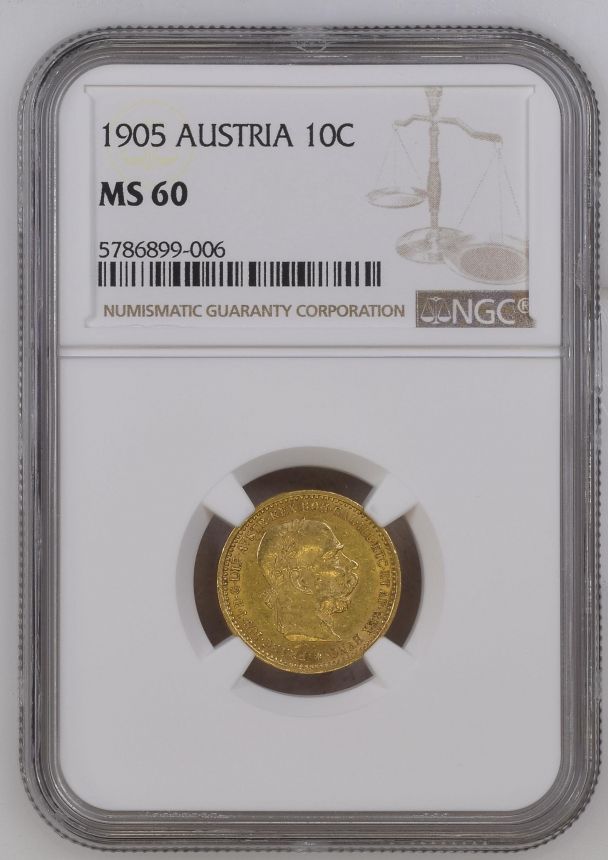 10 Koruna 1905 B.Z. - NGC MS 60 Rakouská ražba - Au/Zlato 900/1000, 19mm, 3,387g
