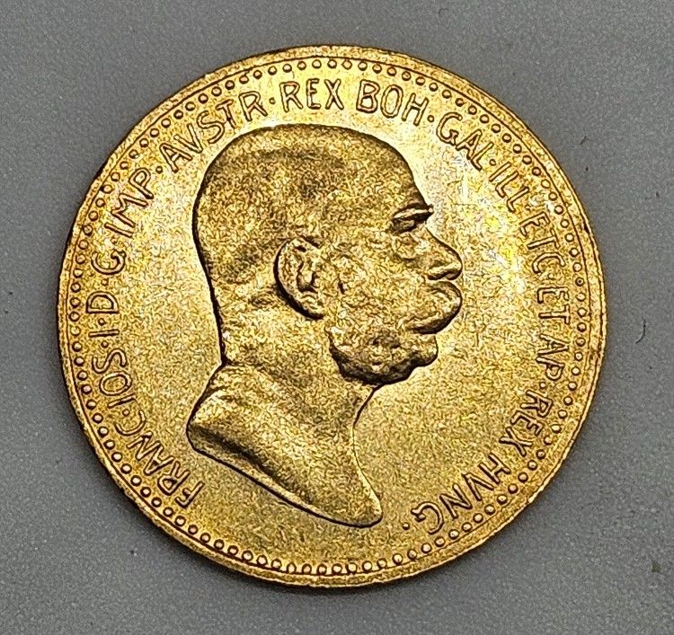 10 Koruna 1908 Jubilejní k 60 let vlády Františka Josefa I. - Au/Zlato 900/1000, 19mm, 3,387g (11)