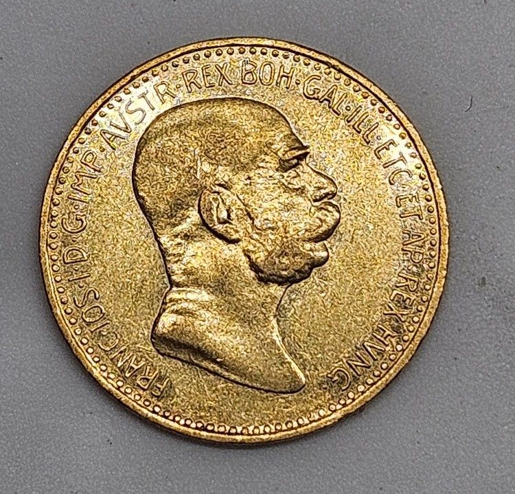10 Koruna 1908 Jubilejní k 60 let vlády Františka Josefa I. - Au/Zlato 900/1000, 19mm, 3,387g (12)