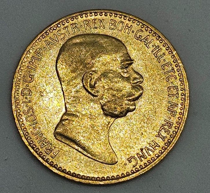 10 Koruna 1908 Jubilejní k 60 let vlády Františka Josefa I. - Au/Zlato 900/1000, 19mm, 3,387g (17)