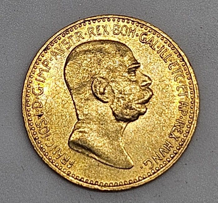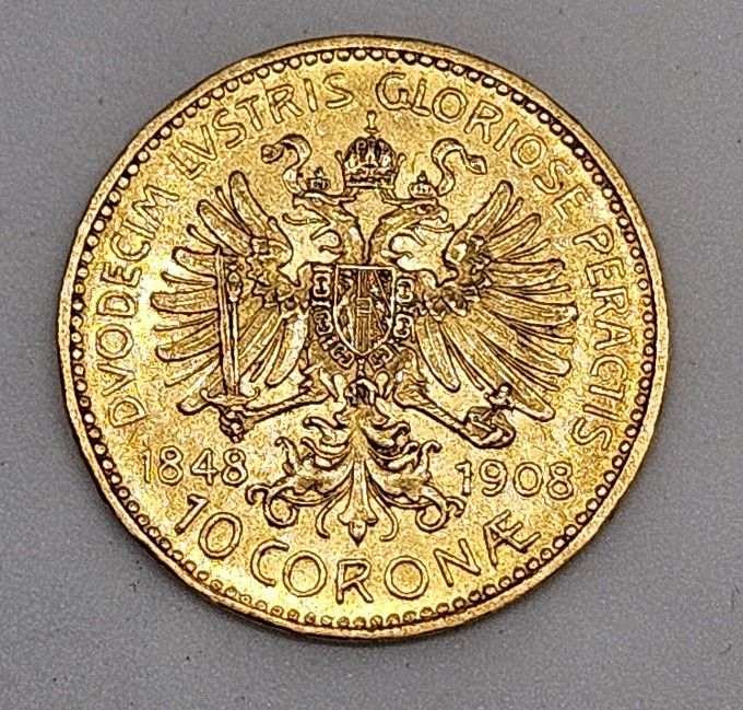 10 Koruna 1908 Jubilejní k 60 let vlády Františka Josefa I. - Au/Zlato 900/1000, 19mm, 3,387g (18)