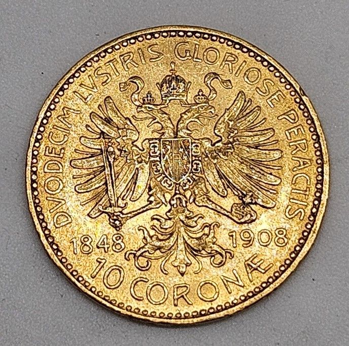 10 Koruna 1908 Jubilejní k 60 let vlády Františka Josefa I. - Au/Zlato 900/1000, 19mm, 3,387g (19)
