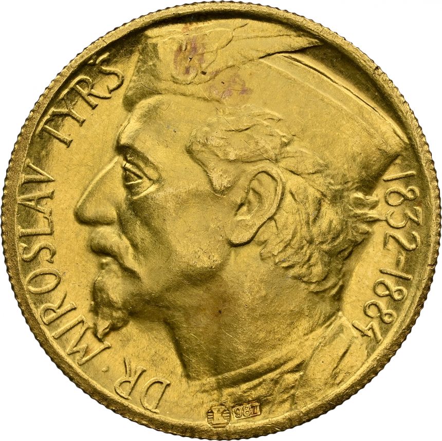 Dukátová medaile 1932 Miroslav Tyrš - NGC MS 62, 20mm, 3,5g, Au 987/1000, autor: J.Brůha, hrana vroubkovaná, raženo 1742 kusů
