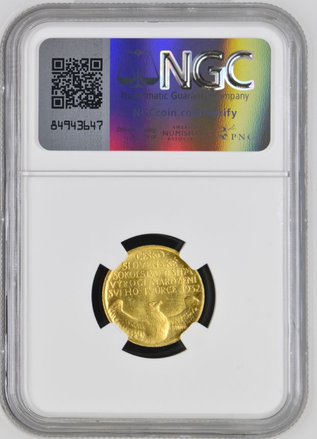 Dukátová medaile 1932 Miroslav Tyrš - NGC MS 62, 20mm, 3,5g, Au 987/1000, autor: J.Brůha, hrana vroubkovaná, raženo 1742 kusů Hledaná ČSR medaile! Zlatá medaile 1932 (Dukát), Dr. Miroslav Tyrš. K výročí narození zakladatele Tělocvičné jednoty Sokol.