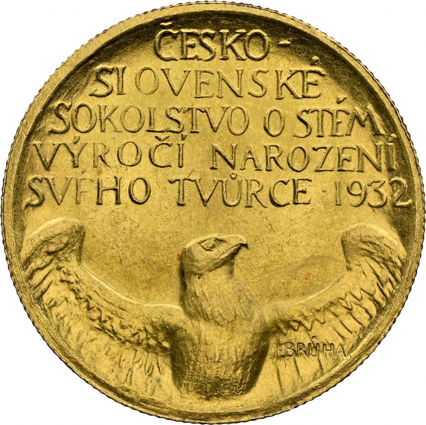 Hledaná ČSR medaile! Zlatá medaile 1932 (Dukát), Dr. Miroslav Tyrš. K výročí narození zakladatele Tělocvičné jednoty Sokol.