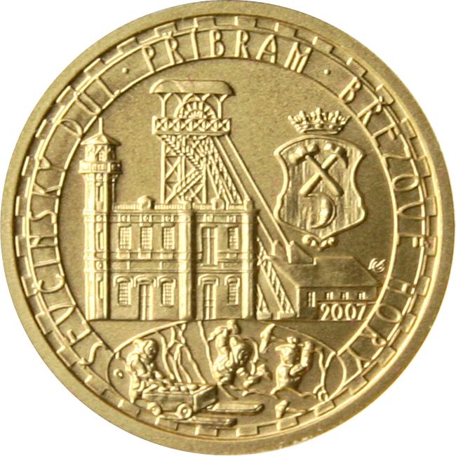 2500 Kč ČNB Ševčínský Důl na Březových Horách v Příbrami, Au 999,9/1000. Rok ražby 2007, Standart tedy bežná kvalita, 22mm, 7,78g, etue, certifikát, autor L.Charvát.