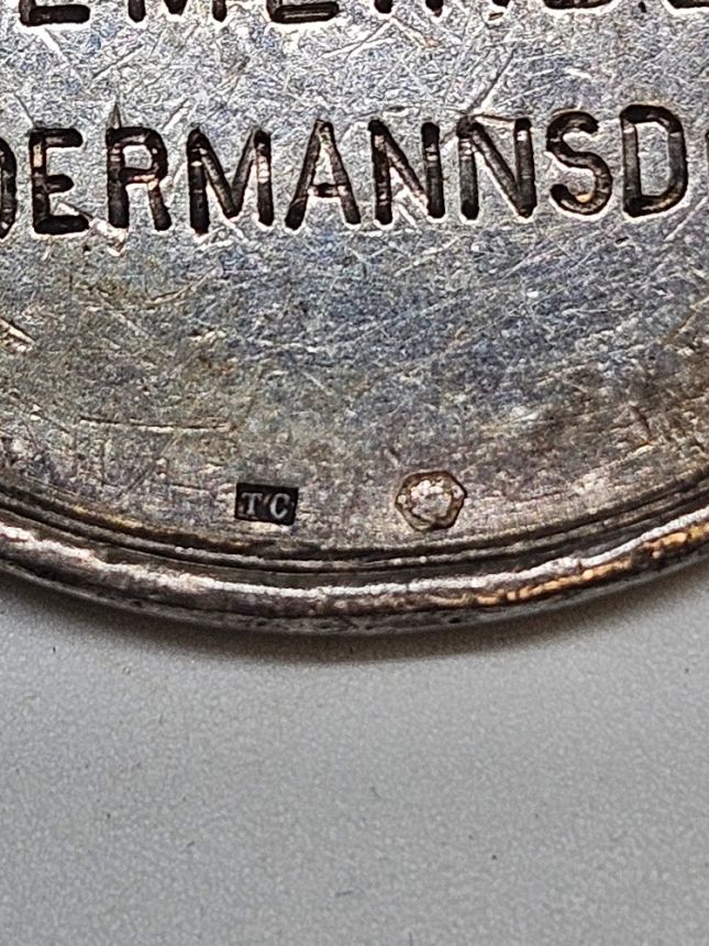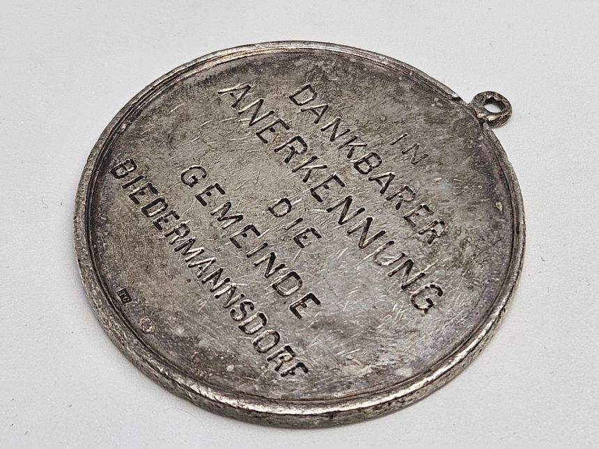 Ag medaile uznání obce Biedermannsdorf 1886 - 1888 42mm, puncováno,18,6g