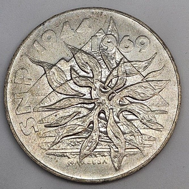 25 Koruna 25. výročí SNP 1969, PLAMENY, Ag 500/1000, 34mm, B.K. 16g - R! (2)