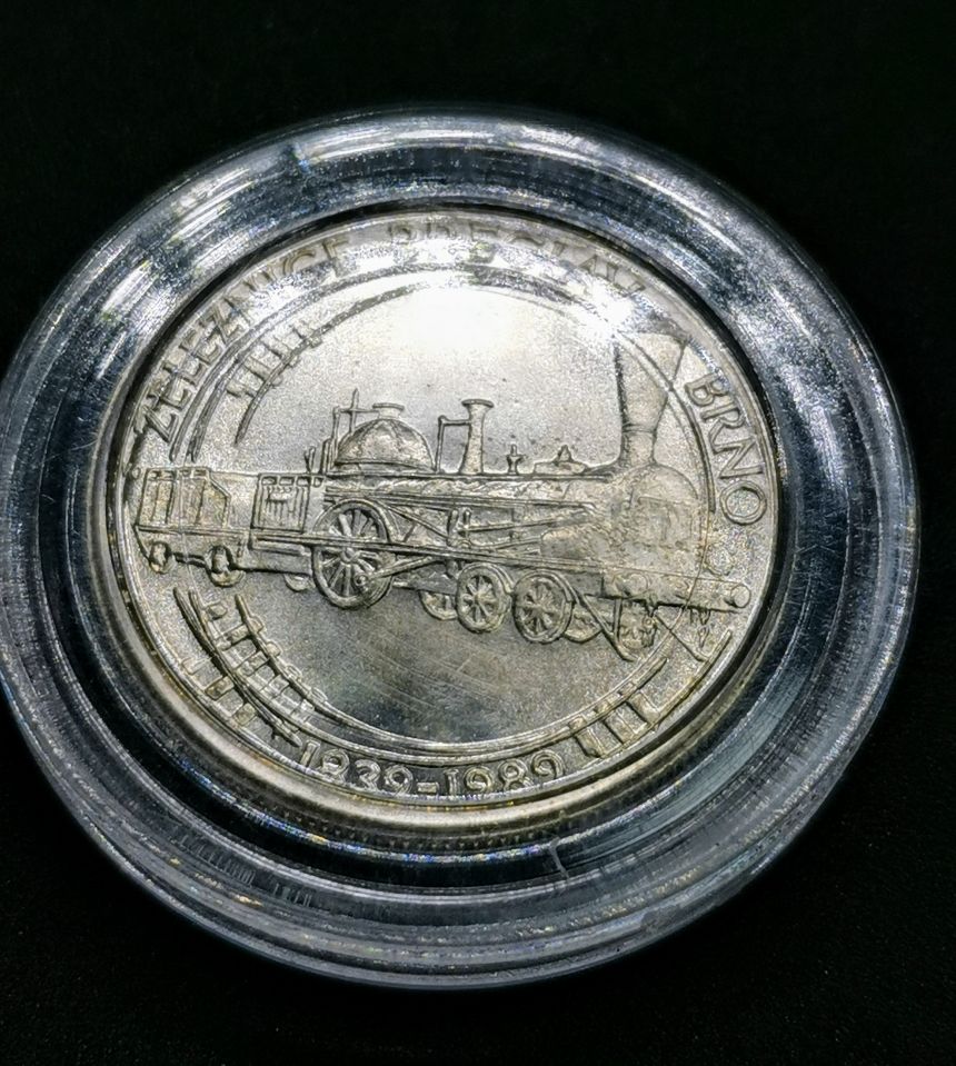 50 Kčs 1989- Železnice Břeclav - Brno, 27mm, 7g, 500/1000 Stav 0/0 - Plastová ETUE