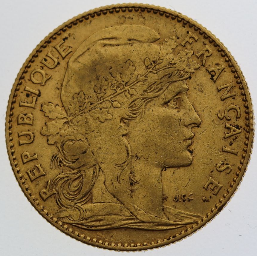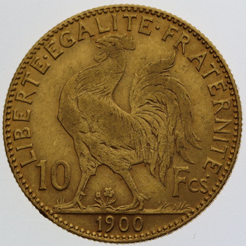 Francie - 10 Frank 1900 A Marianne - mincovna Paříž - Au 900/1000, 21mm,3,226g, III. Republika