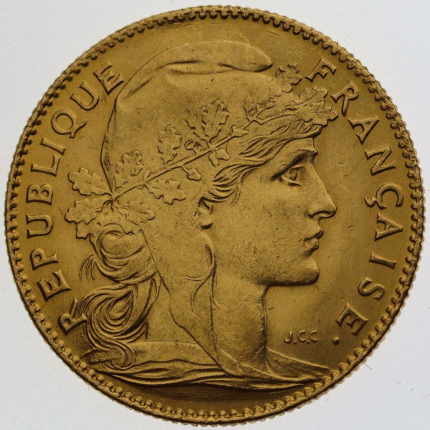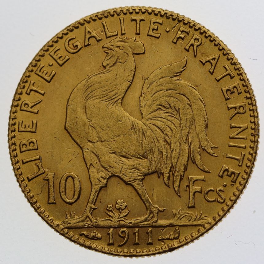 Francie - 10 Frank 1911 A Marianne - mincovna Paříž - Au 900/1000, 21mm,3,226g, III. Republika