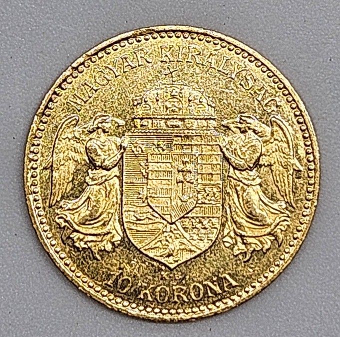 10 Koruna 1908 K.B. Kremnica Uherská ražba - Au/Zlato 900/1000, 19mm, 3,387g