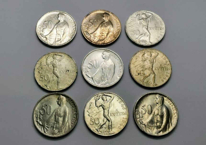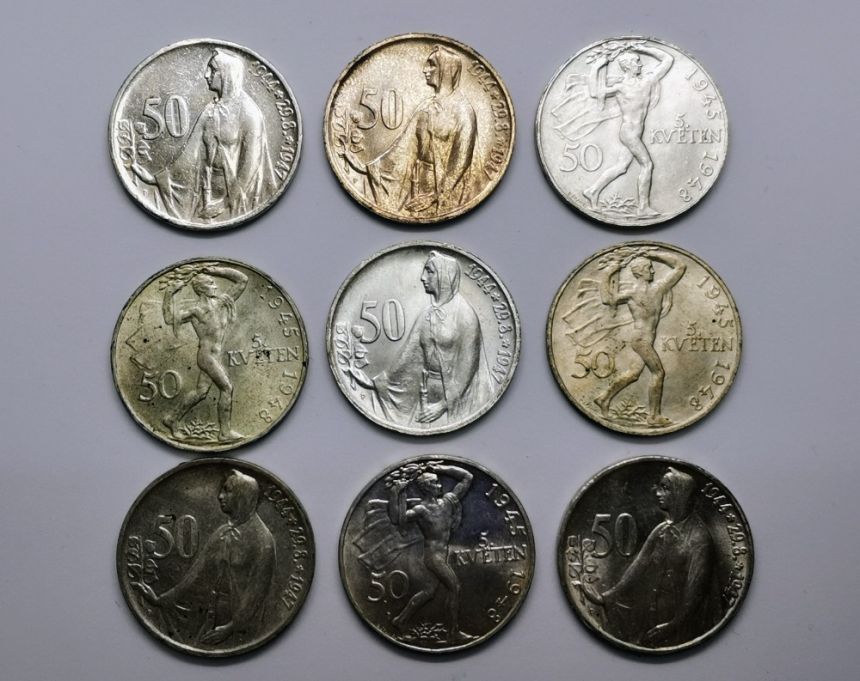 Konvolut 9 kusů pamětních Ag 50Kčs 1947 a 1948