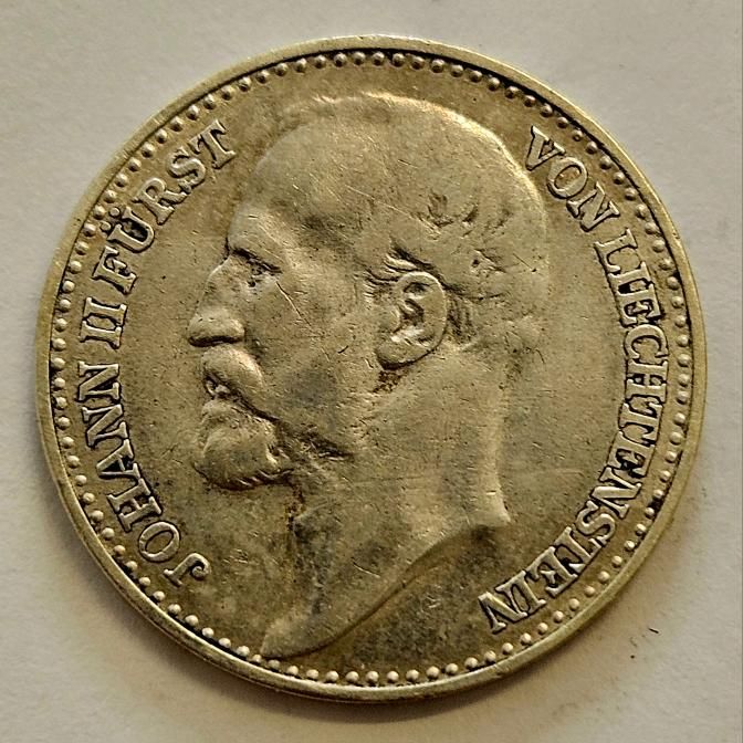 Stříbrná 1 Koruna, 1904 Lichtenštejnsko - ryzost: Ag 835 váha: 5 g 23mm