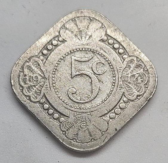 Holandsko - 5 Cents 1914 - Copper- Nickel, 4,5g, 21,4x21,4 mm