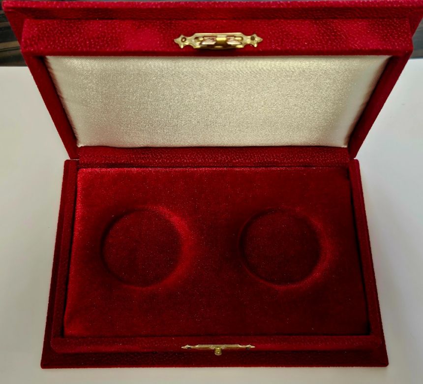 Luxusní ETUE na mince/medaile o průměru až 40mm - červená -15,5x10,5cm - Na 2 medaile či mince!!