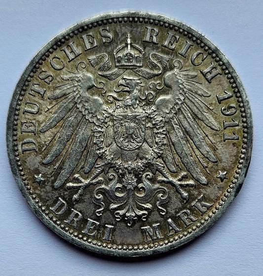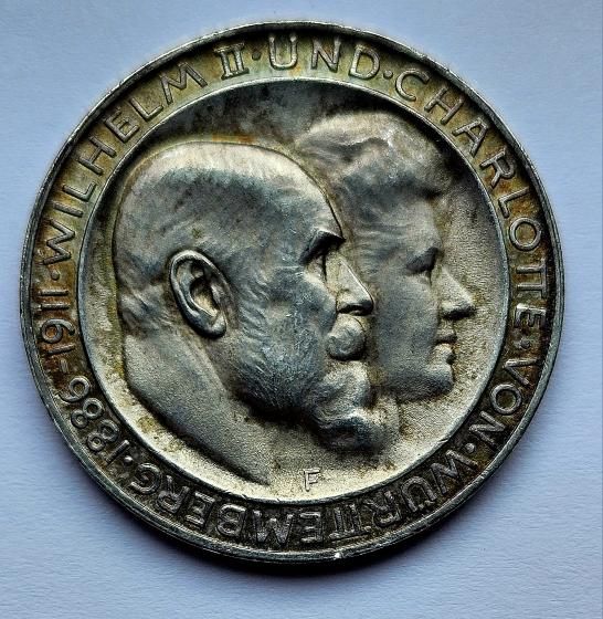 3 Marka Stříbrná Svatba 1911 F - WILHELM II a CHARLOTTE