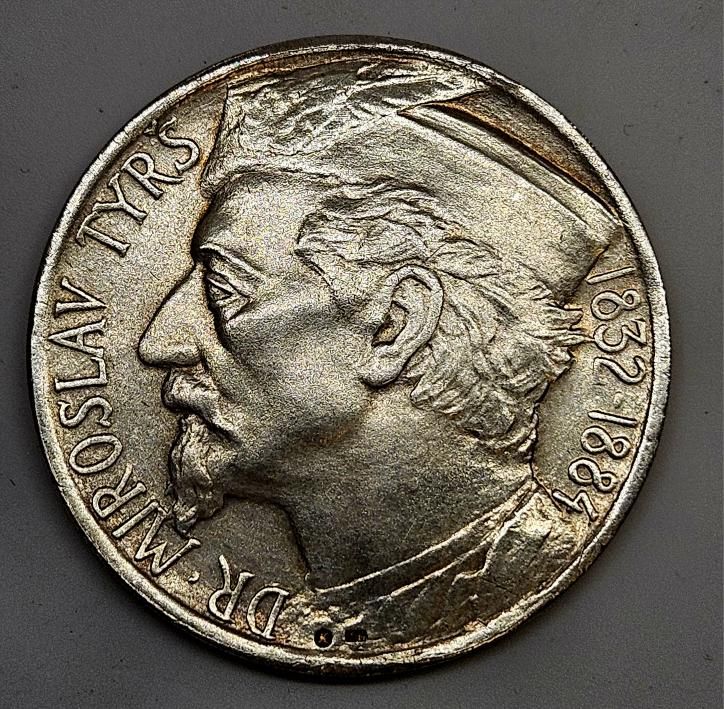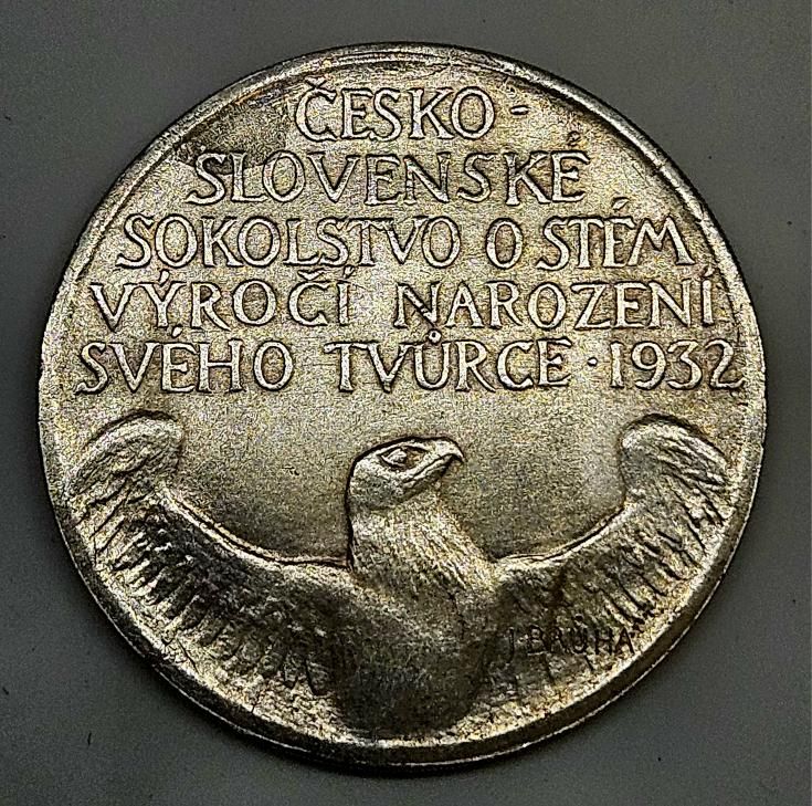 Ag medaile ČSR Miroslav Tyrš 1932 42mm, 30g,Ag. Raženo 5000 kusů, vzácná a hledaná medaile, autor J.Brůha, hrana vroubkovaná