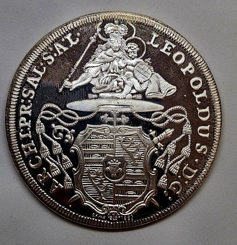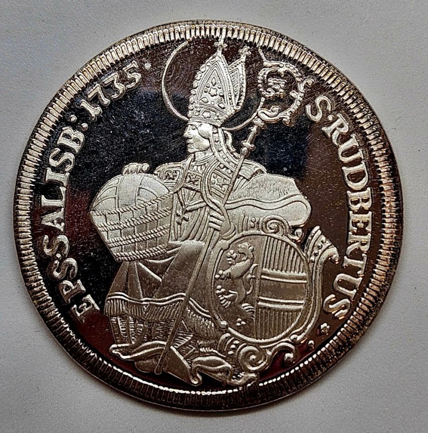 Novoražba Salzburg Tolaru z roku 1735/1983 puncováno! Stříbro 925/1000, PROOF z leštěných razidel!! Průměr 44mm, 34,85gramu