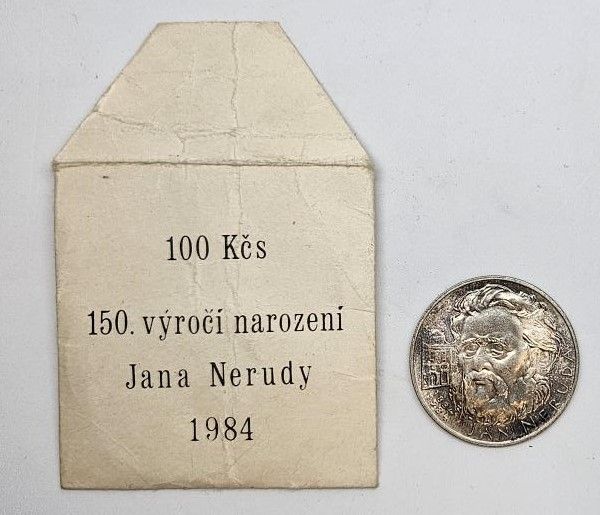 100 Kčs 1984 - Jan Neruda, 29mm, 9g, 500/1000 s původním přebalem