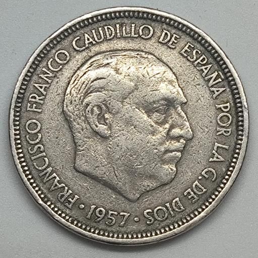 Španělsko - 5 Peseta 1957 (60) - Copper/Nickel, 5,6g, 23mm