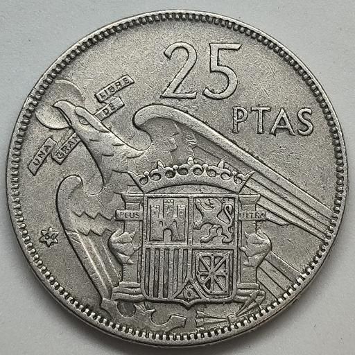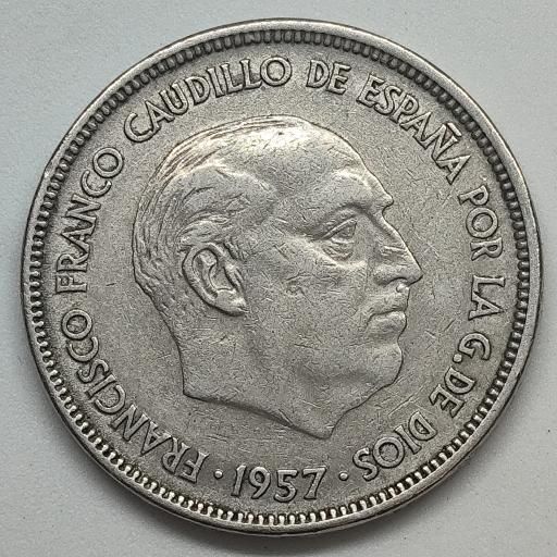 Španělsko - 25 Peseta 1957 (64) - Copper/Nickel, 8,6g, 26,5mm