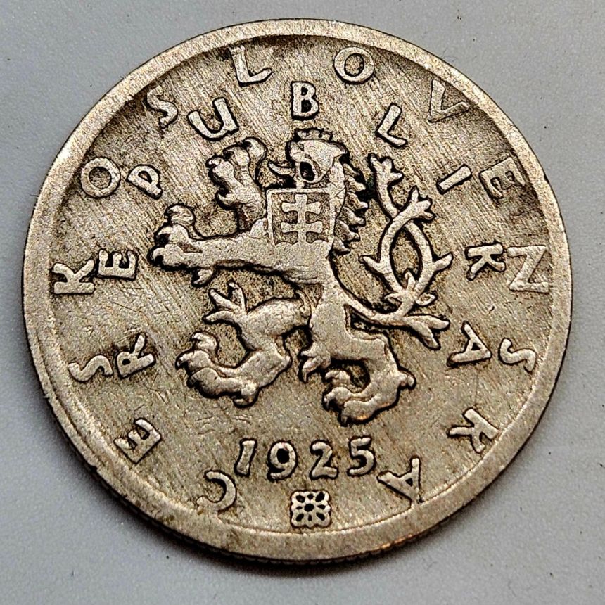 ČSR 50 haléř 1925 - vzácný ročník CuNi 80/20 materiál, 5g váha, 22mm průměr. Autor: O.Španiel, hrana vroubkovaná (2)