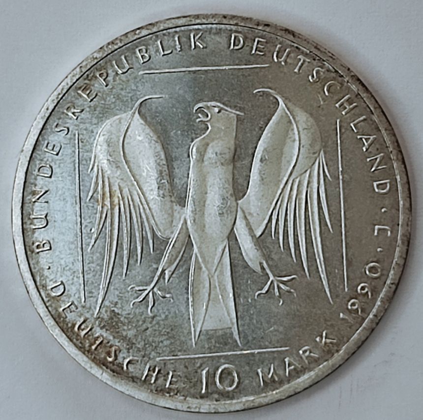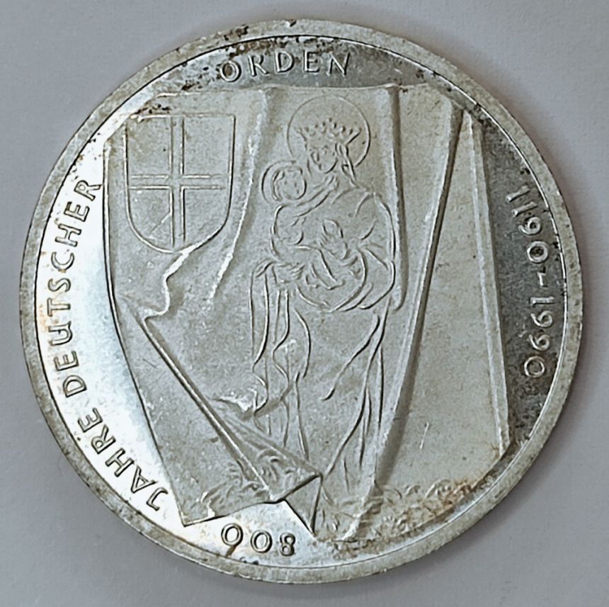Německo 10 marek, 1990 - 800. výročí - Řád německých rytířů - Ag 625/1000, 15,5g, 32,5mm