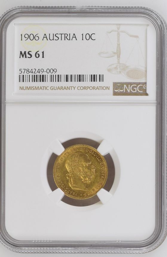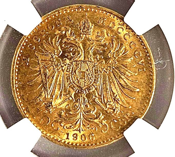 10 Koruna 1906 B.Z. - NGC MS 61 Rakouská ražba - Au/Zlato 900/1000, 19mm, 3,387g