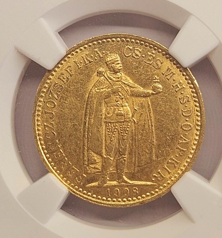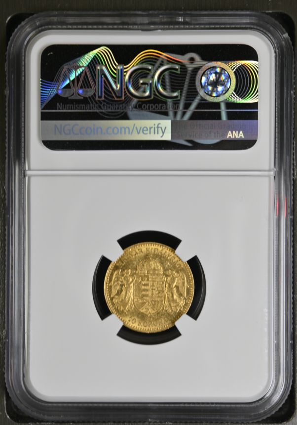 10 Koruna 1908 K.B. Kremnica NGC MS 61 Kremnica Uherská ražba - Au/Zlato 900/1000, 19mm, 3,387g