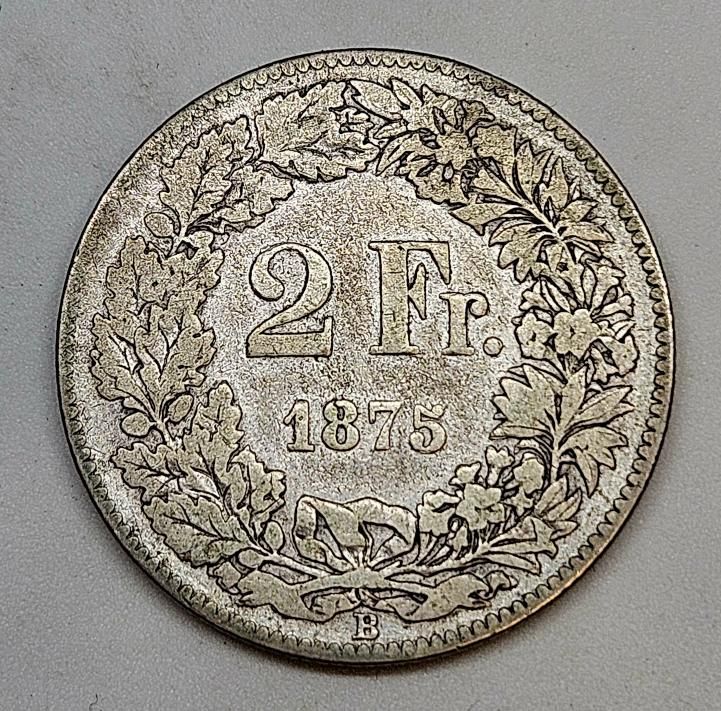 Švýcarsko 2 Franky 1875 - Ag 835/1000, 10g, 27,4mm