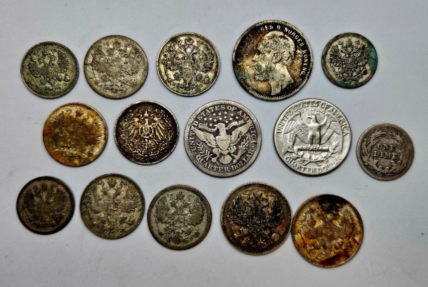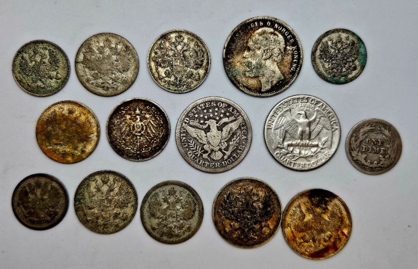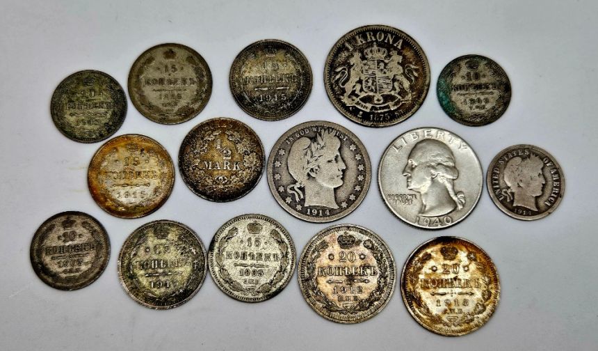 Lot 15 kusů Ag historických mincí - U.S.A.- RUSKO - Německo - Švédsko