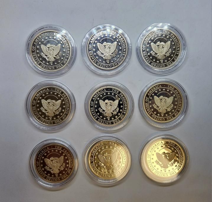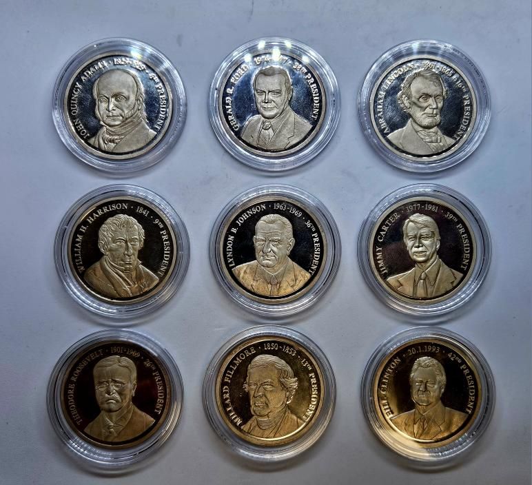 9x Ag Medaile U.S.A. Prezidenti 999/1000, 14,8g, 40mm, PROOF, kapsle