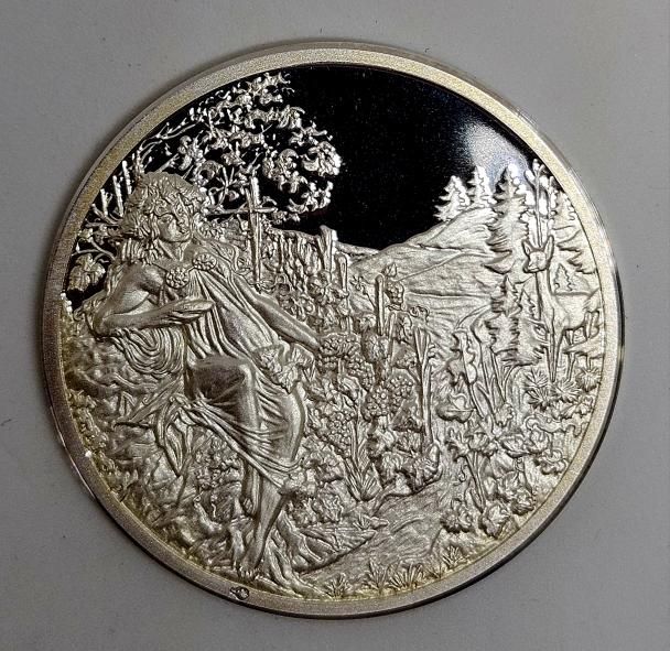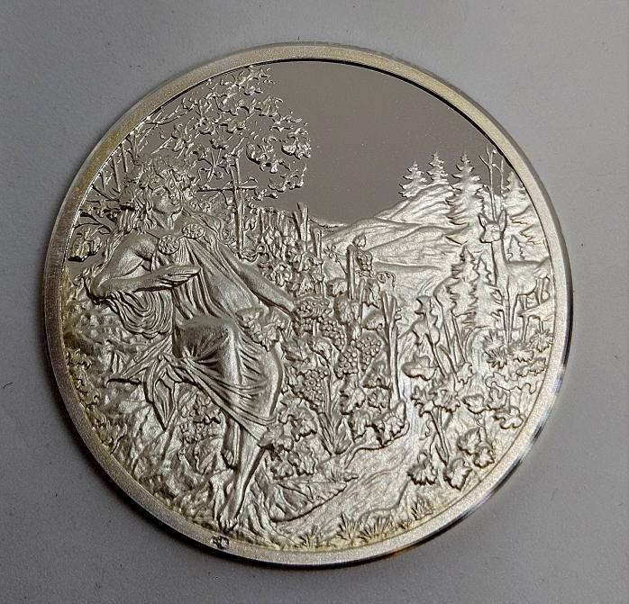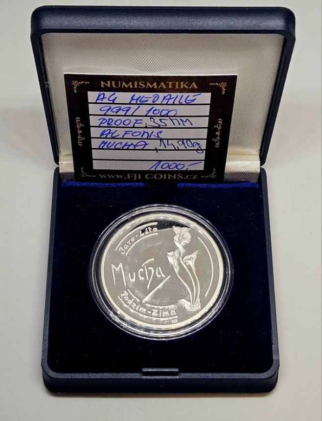 Ag medaile - Alfons Mucha - Jaro - Léto - Podzim - Zima - PROOF - 35mm, 14,90g, 999/1000 - ETUE viz foto.