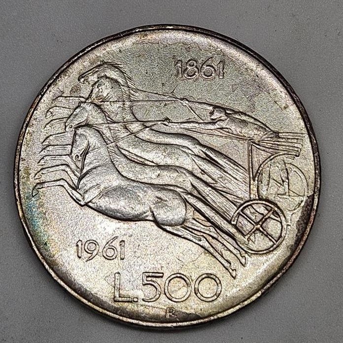 Itálie - 500 Lira 1961 - Ag 835/1000, 11g, 29,3mm - 100. výročí – Sjednocení Itálie