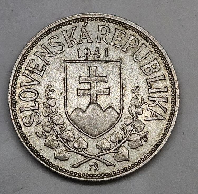 20 Koruna Slovenská 1941, Ag 500/1000, 15g, 31mm - jednokříž