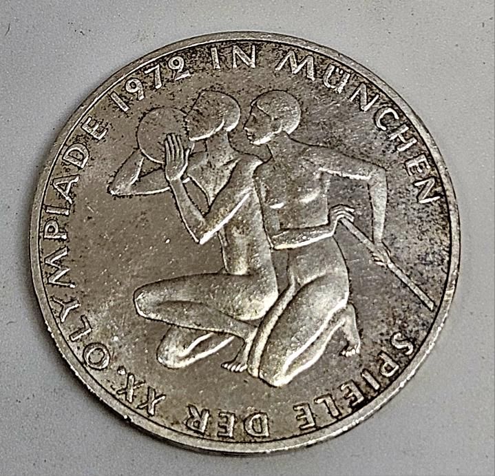 Německo - 10 marek, 1972 XX. letní olympijské hry, Mnichov 1972 - Atleti Ag 625/1000, 15.5g, ø 32.5mm