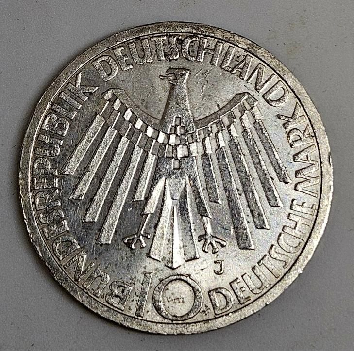 Německo 10 marek 1972 - XX. letní olympijské hry, Mnichov 1972 - Emblém "In Deutschland"- Ag 625/1000, 15.5g, ø 32.5mm