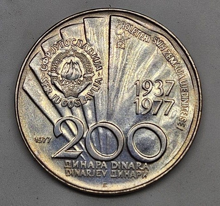 Jugoslávie 200 dinárů, 1977 - 85th Anniversary - Birth of Josip Broz Tito - Ag 750/1000, 15g, 32mm