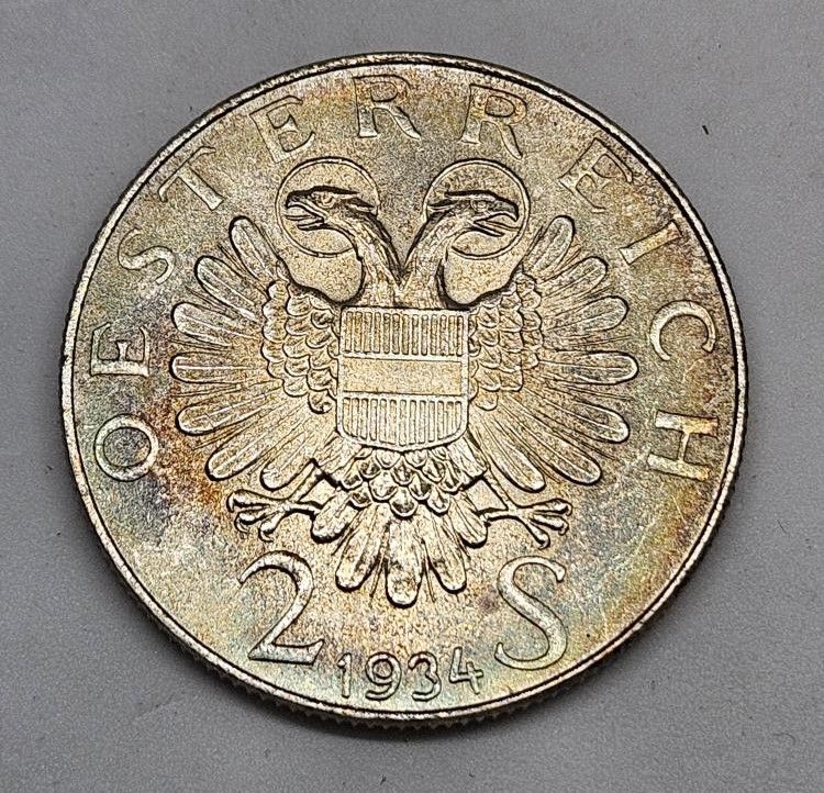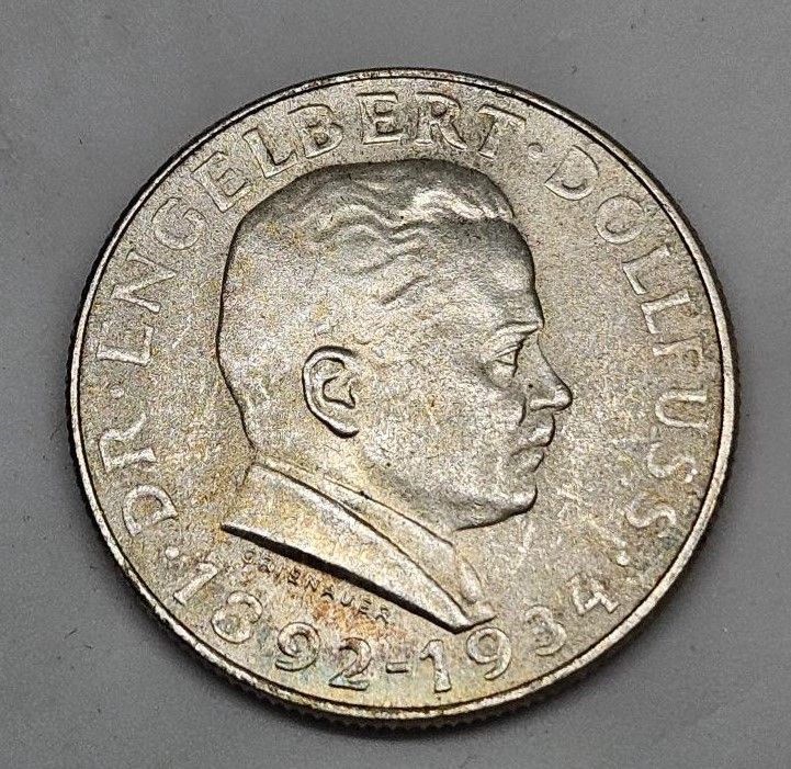 Rakousko 2 šilinky, 1934 Úmrtí Engelberta Dollfusse - Ag 640/1000, 12g, 29,4mm